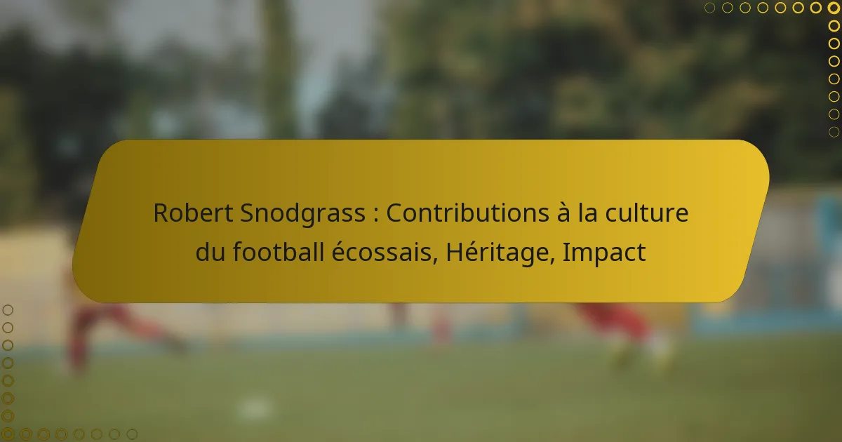 Robert Snodgrass : Contributions à la culture du football écossais, Héritage, Impact